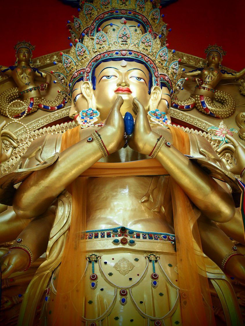 Specially commissioned by Singha Rinpoche, this magnificent statue of Thousand-Armed Chenrezig stands at 11.5m tall (largest in Southeast Asia). It is beautifully adorned with pearls, corals, turquoise and dzi-beads. Within the statue are Dharma texts, precious relics and holy objects granted by His Holiness 14th Dalai Lama, His Holiness Sakya Trizin, His Holiness the 17th Gyalwang Karmapa Ogyen Trinley Dorje, H.E the 102nd Ganden Tri Rinpoche, H.E. the 5th Dagri Rinpoche, H.E. the 6th Kyabje Jhado Rinpoche, H.E Tsikey Chokling Rinpoche, H.E Kyabje Lama Zopa Rinpoche and many other precious lineage gurus. The construction and consecration of this most holy statue was auspiciously completed on May 2016.